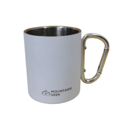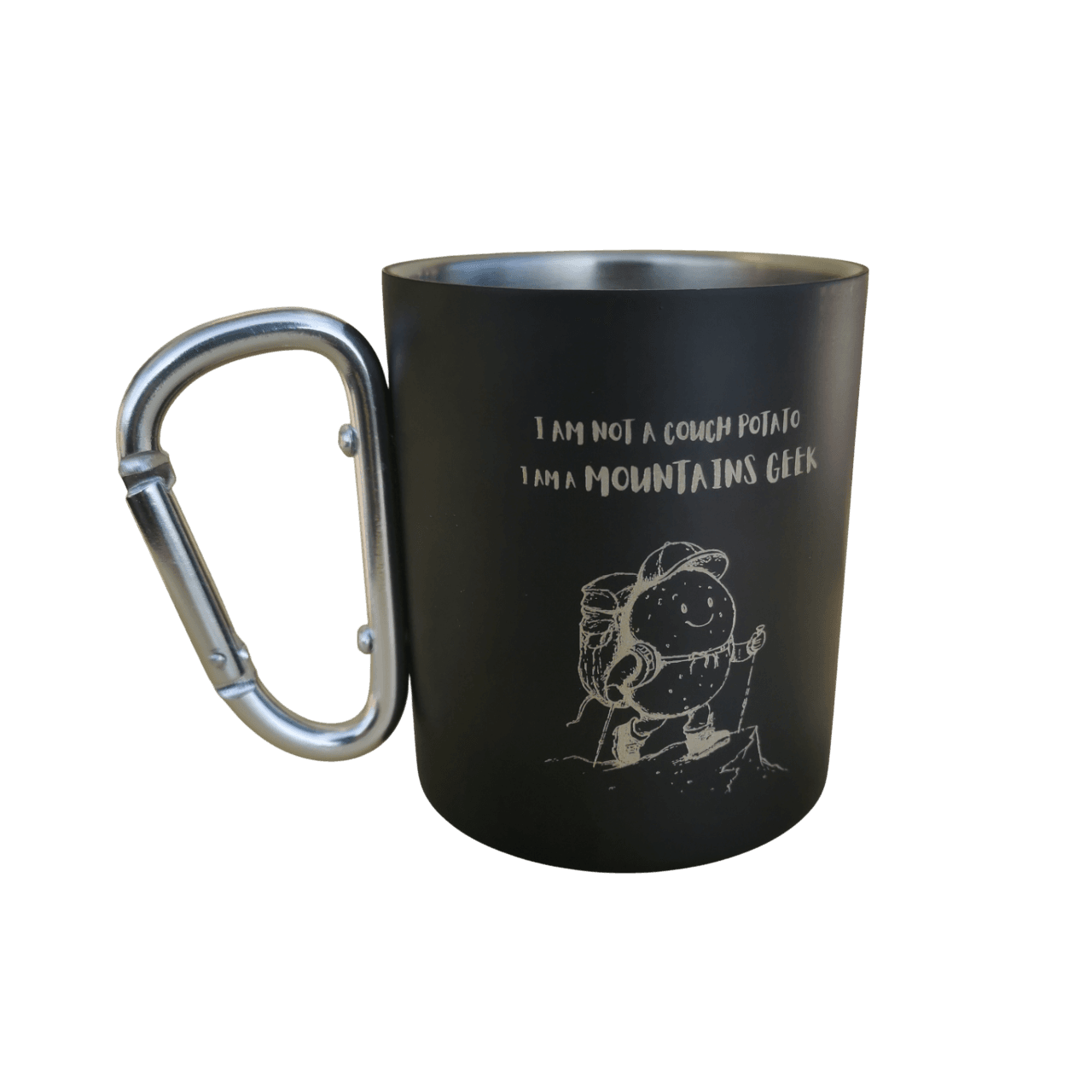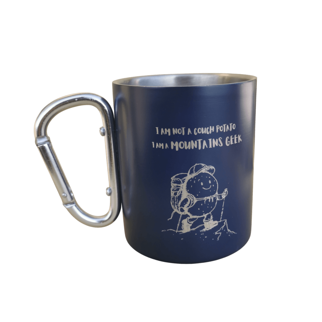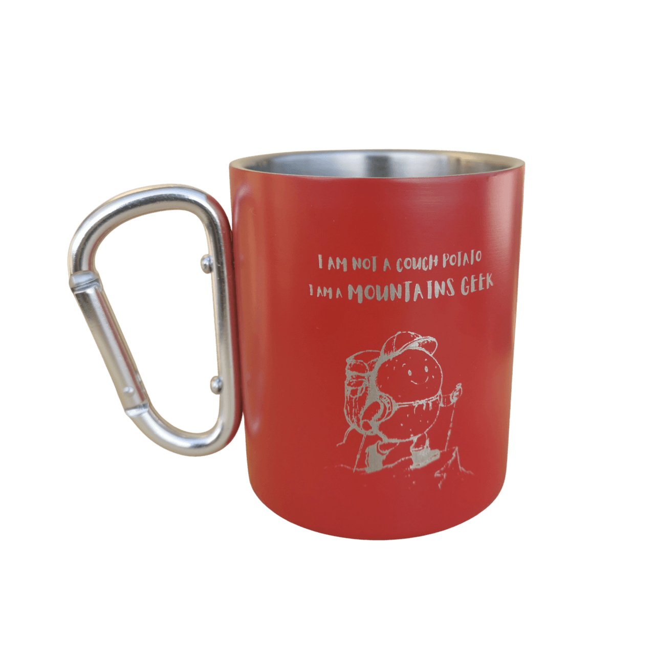 Kovinska skodelica z napisom je narejena iz nerjavečega jekla z dvojno steno in zagotavlja učinkovito izolacijo za dolgotrajno ohranjanje toplote ali svežine vaših najljubših napitkov. Skodelica je opremljena s karabinom, ki omogoča enostavno pritrditev na nahrbtnik, zato je idealna spremljevalka za pohode in raziskovanje narave. Na voljo je v štirih barvah – rdeči, modri, črni in beli. Prostornina: 300 ml.