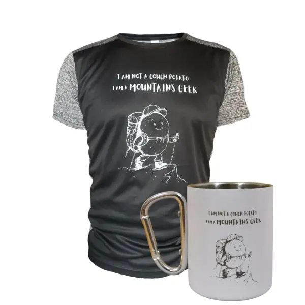 Komplet COUCH POTATO je popolna izbira za vse moške, ki obožujejo preživljanje časa v naravi. Komplet vključuje moško športno majico iz udobne in zračne tkanine, ki zagotavlja udobje med aktivnostmi na prostem, ter kovinsko skodelico, ki bo odlična spremljevalka ob počitku po dolgem pohodu.