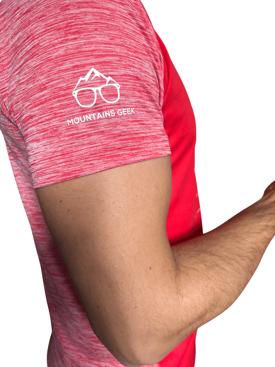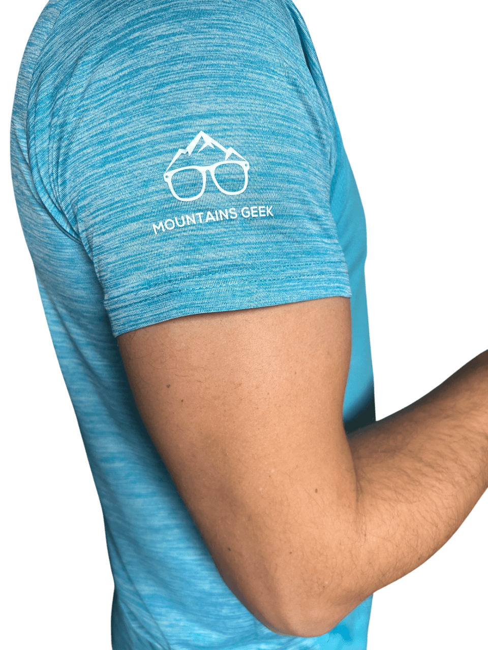Moška športna majica je visokokakovostna tehnična majica s kratkimi rokavi, zasnovana za udobje in funkcionalnost med športnimi aktivnostmi. Ima okrogel ovratnik, strukturirano tkanino spredaj v obliki panja in večbarvno tkanino na hrbtu. Hrbti del je rahlo daljši, kar zagotavlja dodatno udobje pri gibanju. Material hitro suši in omogoča odlično zračnost. Na voljo je v treh barvah: svetlo modri, črni in rdeči.