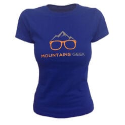 Ženska majica iz 100% polčesanega bombaža (190 g/m²), z ojačanim trakom in rebrastim ovratnikom. Na sprednji strani logo Mountains Geek.